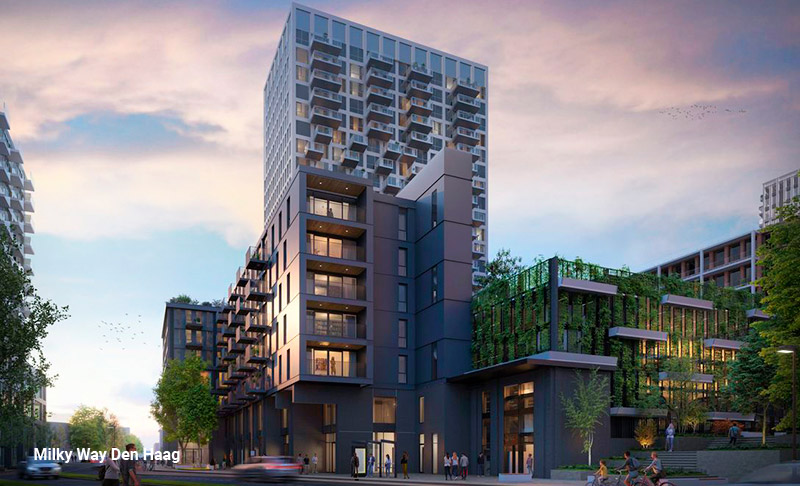 Ook in 2021 hebben we duurzame nieuwbouwprojecten in onze beleggingsportefeuille opgenomen (download pdf). Onder andere in de te bouwen Sluisbuurt in Amsterdam. Een ander goed voorbeeld van duurzame nieuwbouw is het project Milky Way in Den Haag. Daar gaat het om 30 houtbouwwoningen. Sinds 2015 hebben we 1.436 woningen voorzien van zonnepanelen. En we hebben sinds 2015, 784 woningen verduurzaamd.
