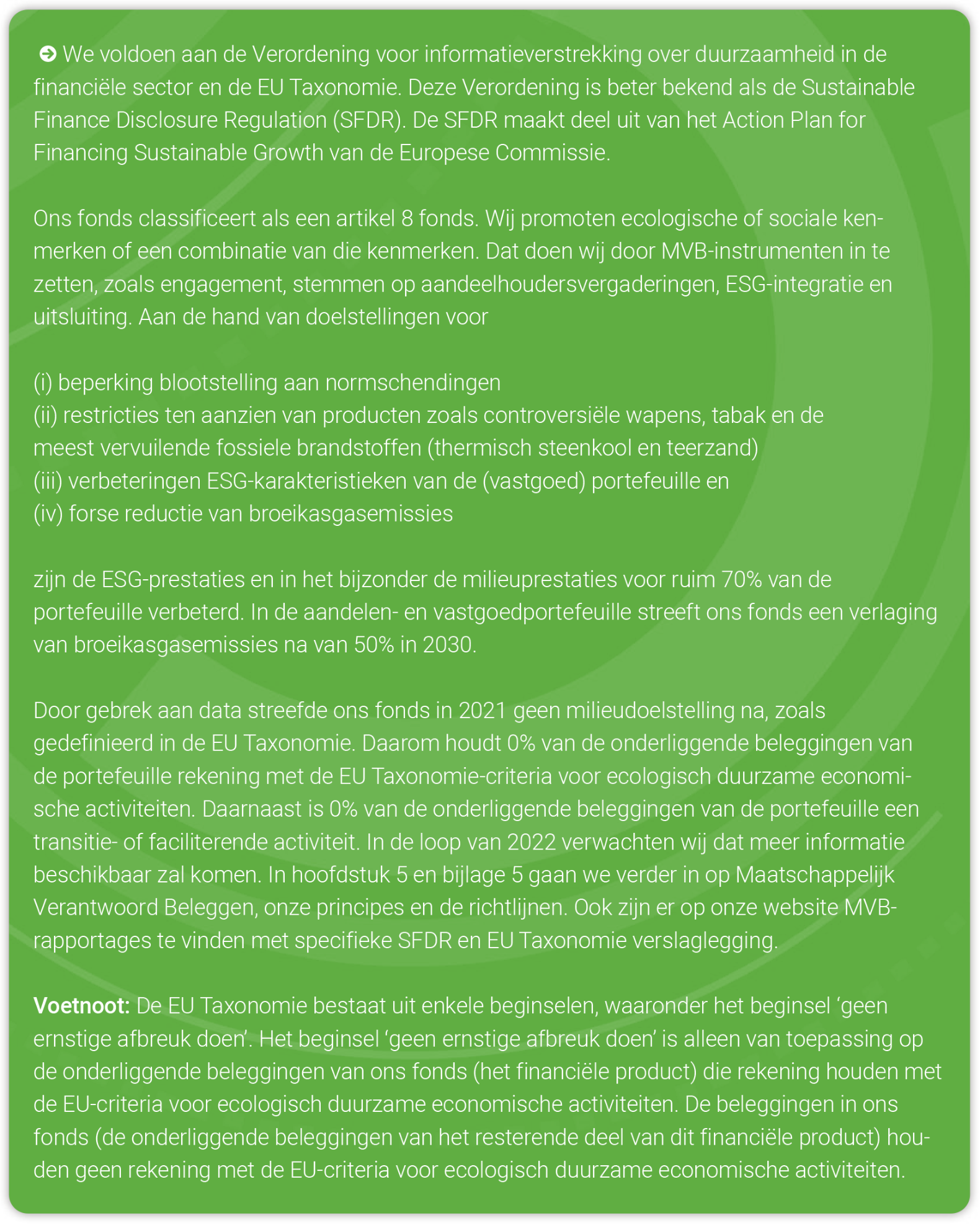 Verwijzingen: SFDR, EU Taxonomie, MVB rapportages
